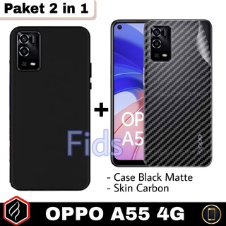 Paket 2 in 1 Case OPPO A55 4G Softcase Black Matte Free Garskin Carbon | Casing Premium Slim Exellent Cover | Soft Matte | Soft Case Macaron