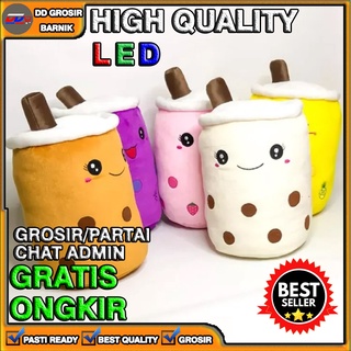 Guling Boneka Boba Milk Tea Lampu LED Nyala Kain Halus Tinggi 60cm