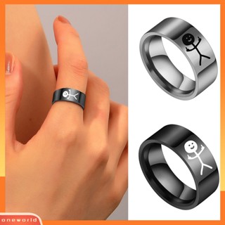 [ONWL] Cincin Pasangan Hip Hop Dipoles Fashion Perhiasan Hadiah Baja Titanium Gambar Tangan Stickman Graffiti Wanita Ring Untuk Perjamuan