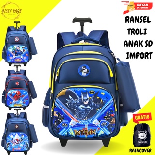 PROMO Tas Sekolah Trolley Roda Dorong Anak TK Gambar SuperHerro Body 3D TIMBUL Import
