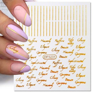 Mxbeauty Bronzing Stiker Kuku Wanita Fashion Manicure Aksesoris Huruf Inggris Garis Geometris Dekorasi Nail Art