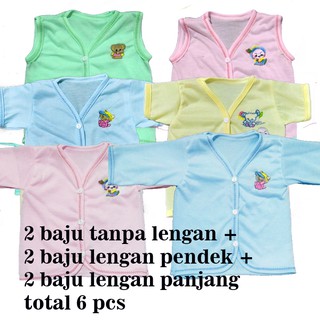 6 pcs- Atasan/ baju bayi 3 jenis -2 tanpa lengan+2 lengan pendek+ 2 lengan panjang