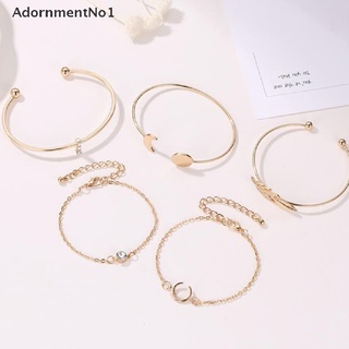 (AdornmentNo1) 5pcs / set Gelang Tangan Terbuka Gaya Bohemian Motif Daun + Bulan + Hollow Untuk Perhiasan Wanita / Pantai