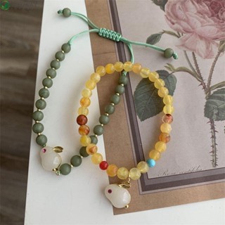 NEEDWAY Giok Kelinci Gelang Lucu Adjustable Zamrud Gelang Hadiah Perhiasan Gaya Cina Perhiasan Hijau Gaya Korea Bracelets