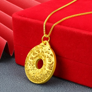 Kalung Emas Asli Kadar 375 Dengan Liontin Bentuk Piringan Perdamaian Untuk Pria Dan Wanita