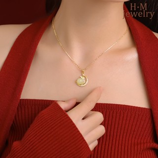 S925 Perak Kelinci Kalung Bertatahkan Giok Hetian Rantai Klavikula Gesper Perdamaian Hadiah Aman Untuk Pacar2023Baru