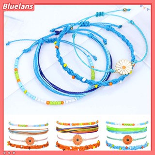[BLS] 4pcs Wanita Gelang Gaya Bohemian Paduan Tahan Air Tenun Tangan Gelang Braided Bangle Dengan Liontin Set Hadiah Ulang Tahun