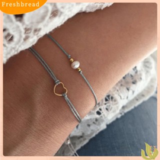 < Freshbread > 2Pcs/Set Double Layer Braided Rope Mutiara Imitasi Berongga Hati Wanita Gelang