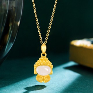 Goldkingdom Fashion Perhiasan Aksesoris Ready Stock Vintage Tanpa Wajah Buddha Liontin Lucu Hotan Giok Putih Emas Gelang Kalung
