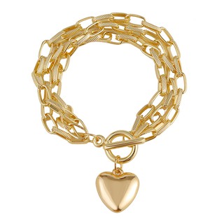 Ins Double-Layer Hip Hop Simple Chain Lock Heart Cross Bear Tebal Rantai Gelang Punk Gelang