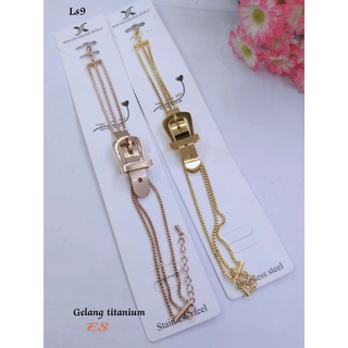 Fourfaahion Gelang Titanium Rantai Motif Belt Premium Lapis Emas S238