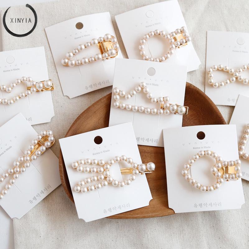 Hairpin Berlian Mutiara Klip Korea Geometri Jepit Rambut Aksesoris Rambut