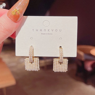 Anting Tusuk Bentuk Geometri Aksen Mutiara Bahan 925 silver Untuk Wanita
