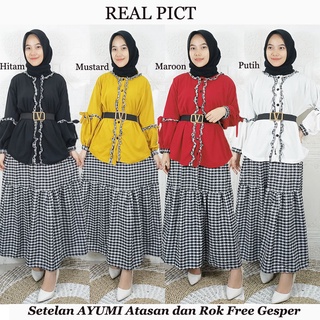AYUMI SETELAN ATASAN DAN ROK KOTAK DAPAT GESPER GL FASHION