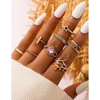 LRC Cincin Fashion Golden Geometric Zircon Leaf Star P75611