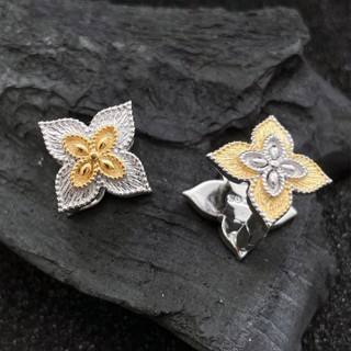 Goldkingdom Aksesoris Perhiasan Fashion Ready Stock Warna Emas Dan Perak Pola Senada Empat Daun Clover Earrings Untuk Kepribadian Mewah Ringan Wanita