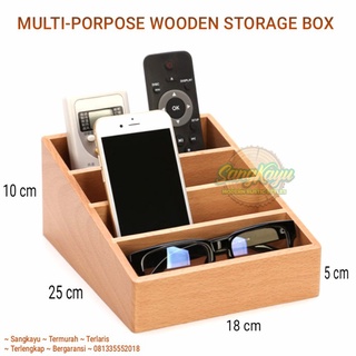 Kotak penyimpanan serbaguna tempat remot docking phone stand kacamata - KAYU MAHONI