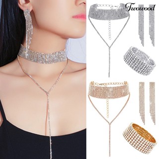 Twowood 1set Kalung Pengantin Anting Gelang Rumbai Perhiasan Berlian Imitasi Adjustable Set Perhiasan Ringan Untuk Pernikahan