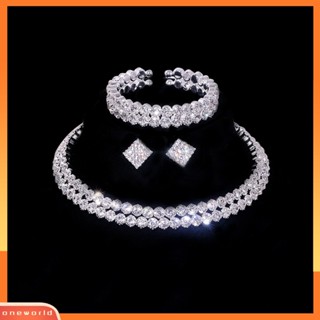 [ONE] 1set Set Perhiasan Berlian Imitasi Elegan Untuk Wanita Alloy Kristal Imitasi Choker Kalung Anting Gelang Ideal Untuk Pesta Pernikahan Pengantin