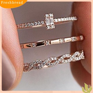< Freshbread > 3Pcs/Set Criss Cross Cubic Zirconia Bertatahkan Cincin Susun Perhiasan Pengantin Pernikahan