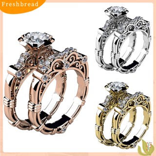 < Freshbread > 2Pcs/Set Pertunangan Pernikahan Retro Wanita Berlian Imitasi Ukir Jari Cincin Perhiasan
