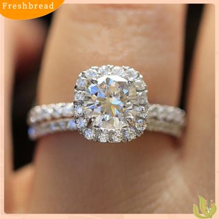 < Freshbread > 2Pcs/Set Cincin Susun Berlian Imitasi Persegi Pernikahan Pertunangan Wanita Jari Perhiasan