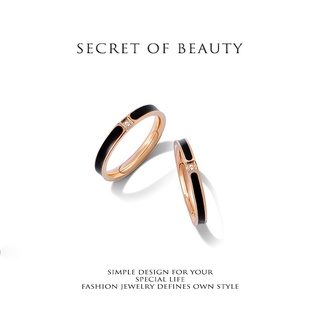 Cincin Wanita Titanium Stainless Steel Aksen Berlian Imitasi untuk Pria / Wanita Cincin hitam
