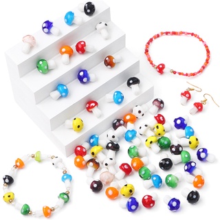 20 Pcs Manikmanik Jamur Kaca Warna Campur Ukuran 10x12mm Untuk Manik-manik Glaze Bentuk Jamur Untuk Membuat Perhiasan Kalung Anting DIY
