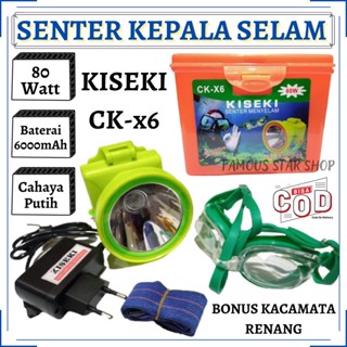 Senter kepala selam KISEKI CK-X6 80 WATT cahaya putih Headlamp free kacamata selam | Senter Kepala Kiseki ck x6 6000mAh Headlamp Diving 80watt Senter Selam - Senter Diving | FMS