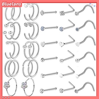 24pcs Anting Tindik Hidung / Tubuh Bentuk Bulat Bahan Steel Dengan Berlian Imitasi