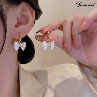 Twowood 1pasang Wanita Huggie Anting Busur-Simpul Bentuk Warna Kontras Berlian Imitasi Transparan Halus Tepi Telinga Dekorasi Ada Peradangan High-end Pernikahan Pengantin Drop Earrings