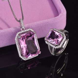 Goldkingdom Fashion Perhiasan Aksesoris Ready Stock Baru High-end Fashion Super Populer Persegi Panjang Pink Zirkon Mewah Kalung Liontin Wanita Versi Korea Rantai Tulang Selangka