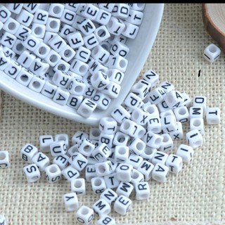30 GRAM Manik Mote Huruf KUBUS PUTIH tulisan HITAM 6MM