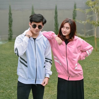 COD Jaket Salur Garis Besar Belang Hodie Zipper Pria Wanita
