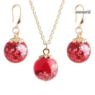 OW@ Fashion Women Dried Flower Glass Ball Pendant Necklace Hook Earrings Jewelry Set