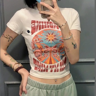 American Retro Kaos Pendek Wanita Lengan Pendek Eropa dan Amerika Street Hot Girl Tide Merek In Slim