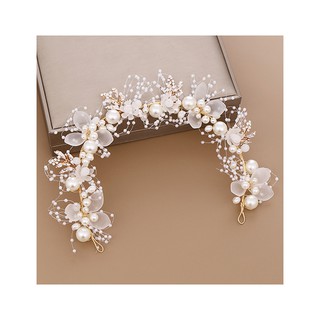 LRC Aksesoris Rambut Fashion White Pearl Flower Braided Leaf Hair Band F92859