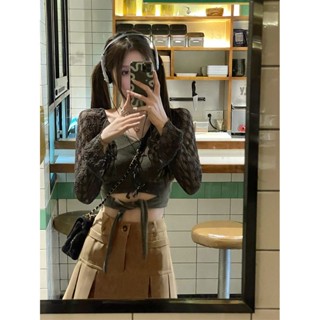 ☢✔✠#COD Suhao Pure Desire Style Pakaian Rajut Wanita Rasa Desain Niche Spice Girls Seksi Skema Sweater Musim Semi Inner Pendek Bawah Atasan