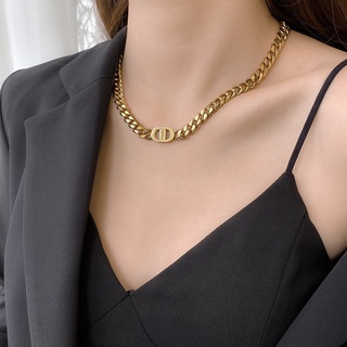 Kalung Rantai Klavikula Liontin Huruf D Bahan Titanium Steel Gaya Korea
