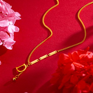 Goldkingdom Perhiasan Fashion Emas Asli Kadar 375Bangkok Aksesoris Ready Stock Gilt Trend Huruf Inggris D Set Rantai Ins Kalung Untuk Wanita
