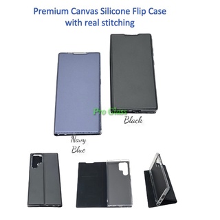Samsung S8 / Plus / S21 FE Note 8 / Note 9 / Note 10 Plus / S22 / Plus / ULTRA Canvas Leather Flip Case Cover Standing View
