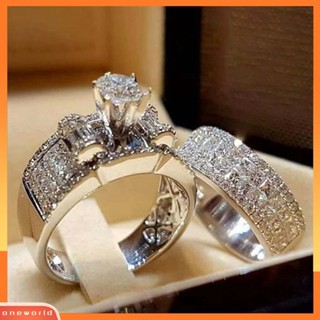 {oneworld} 2pcs/set Lebar Sederhana Cincin Pasangan Paduan Bertatahkan Berlian Imitasi Bersinar Pernikahan Band Perhiasan Fashion