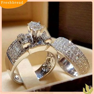 < Freshbread > 2Pcs/Set Indah Permukaan Halus Pernikahan Band Alloy Sederhana Cubic Zirconia Wanita Rings Charm Jewelry