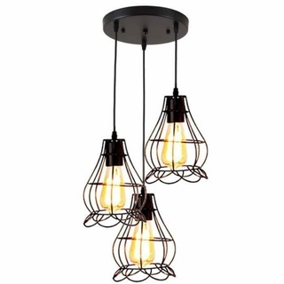 Kap Lampu Gantung Besi Flat Keranjang Bulat Cafe Vintage Edison