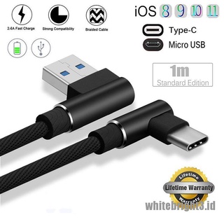< White3 > Kabel Data / Charger Micro USB / Type C / IOS / Android 90 Derajat Model Kepang