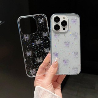 Casing 3D Butterfly Glitter Bening Lucu Untuk iPhone 14 13 12 11 Pro MAX Plus Mini Bersinar Transparan Shockproof Cover Untuk iPhone X XS MAX XR 7 8 Plus SE 2022 2020 14Plus 13Mini 12Mini