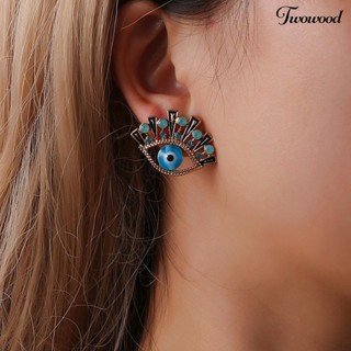 1 Pasang Anting Stud Desain Mata Biru Aksen Berlian Imitasi Untuk Wanita