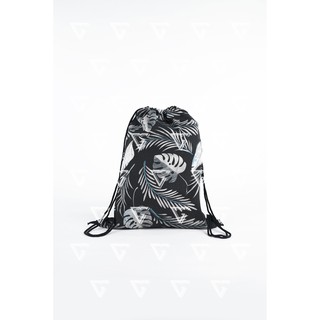Tas Serut Gymsack Pria Wanita Motif Keren Kanvas Import Korea Tropikal Hitam