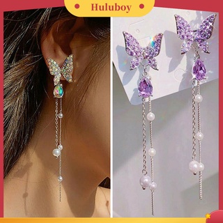 Hu Hu Hu Hu Hu Alat Bantu Pasang Kacamata♡ 1 Pasang Anting Rumbai Panjang Desain Butterfly Bahan Alloy Untuk Anniversary