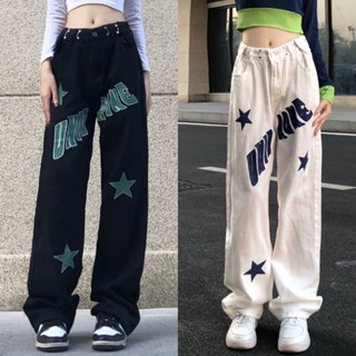 Red Celana jeans wanita gaya Amerika baru trendi all-match pinggang tinggi pelangsing longgar menutupi daging celana kasual kaki lebar lurus
